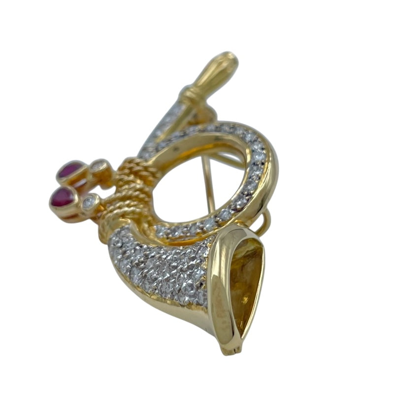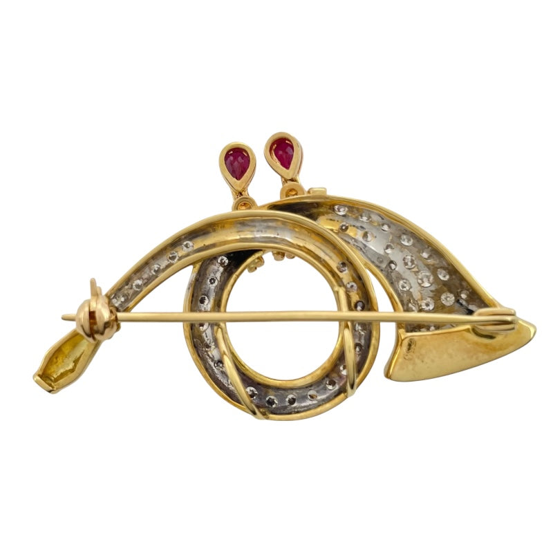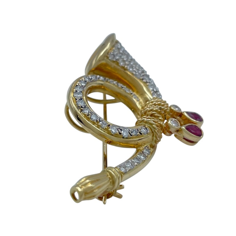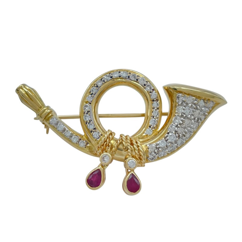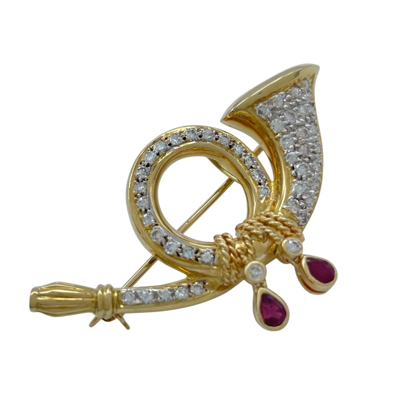 ホルン モチーフ ダイヤ/ルビー ピンブローチ |