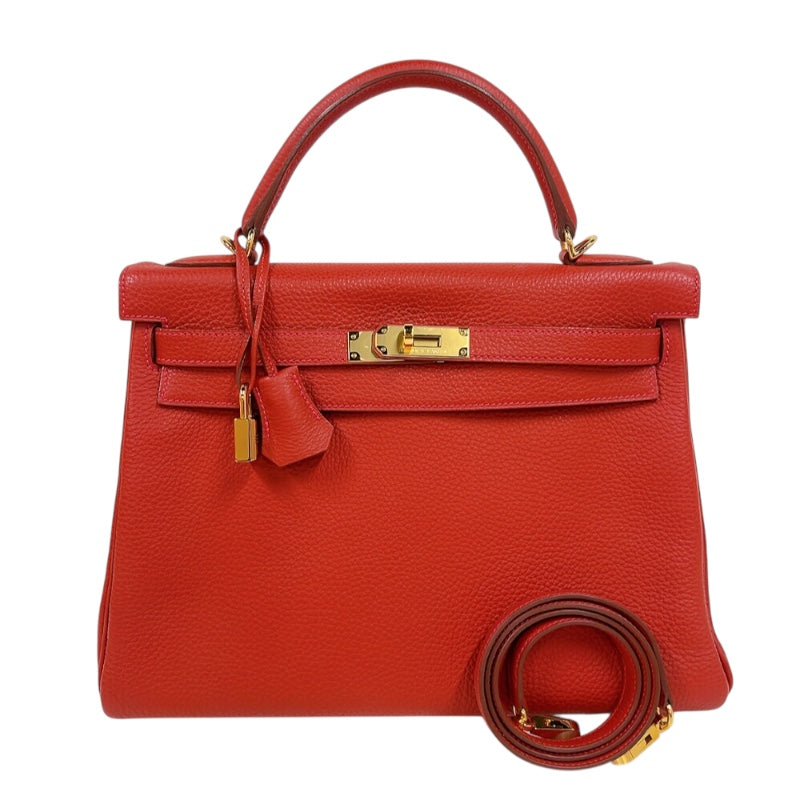 エルメス HERMES ケリー32 内縫い □Q刻印 (2013年製) ヴァーミリオン ゴールド金具 トゴ レディース ハンドバッグ