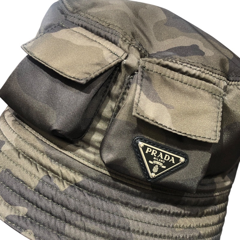 プラダ PRADA トライアングルロゴポーチ付 バケットハット 2HC350 カーキ ナイロン メンズ その他ファッション雑貨