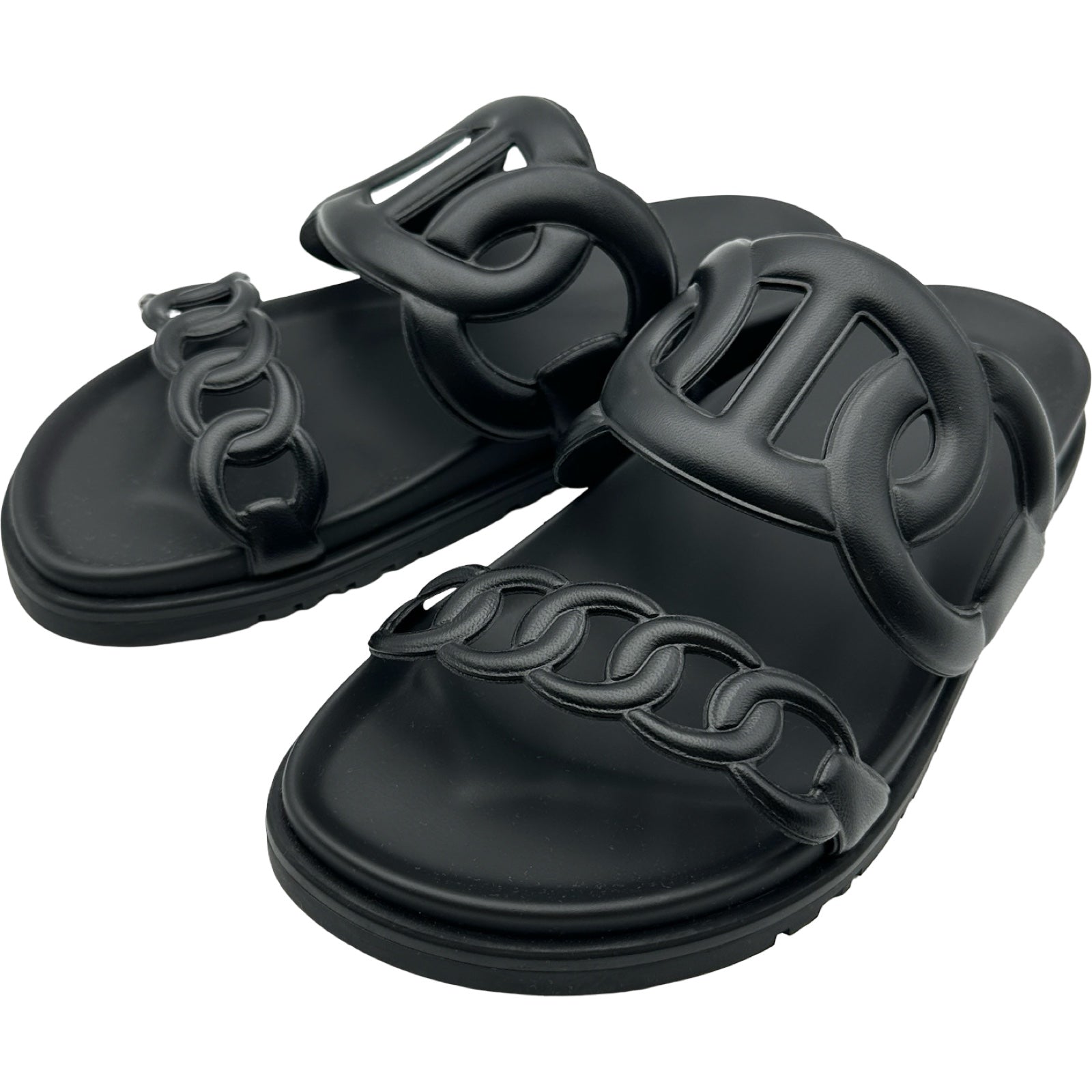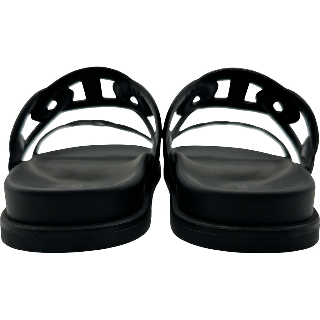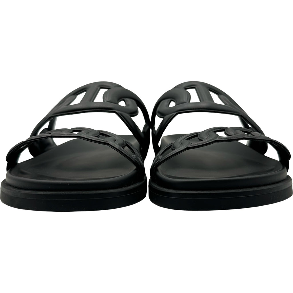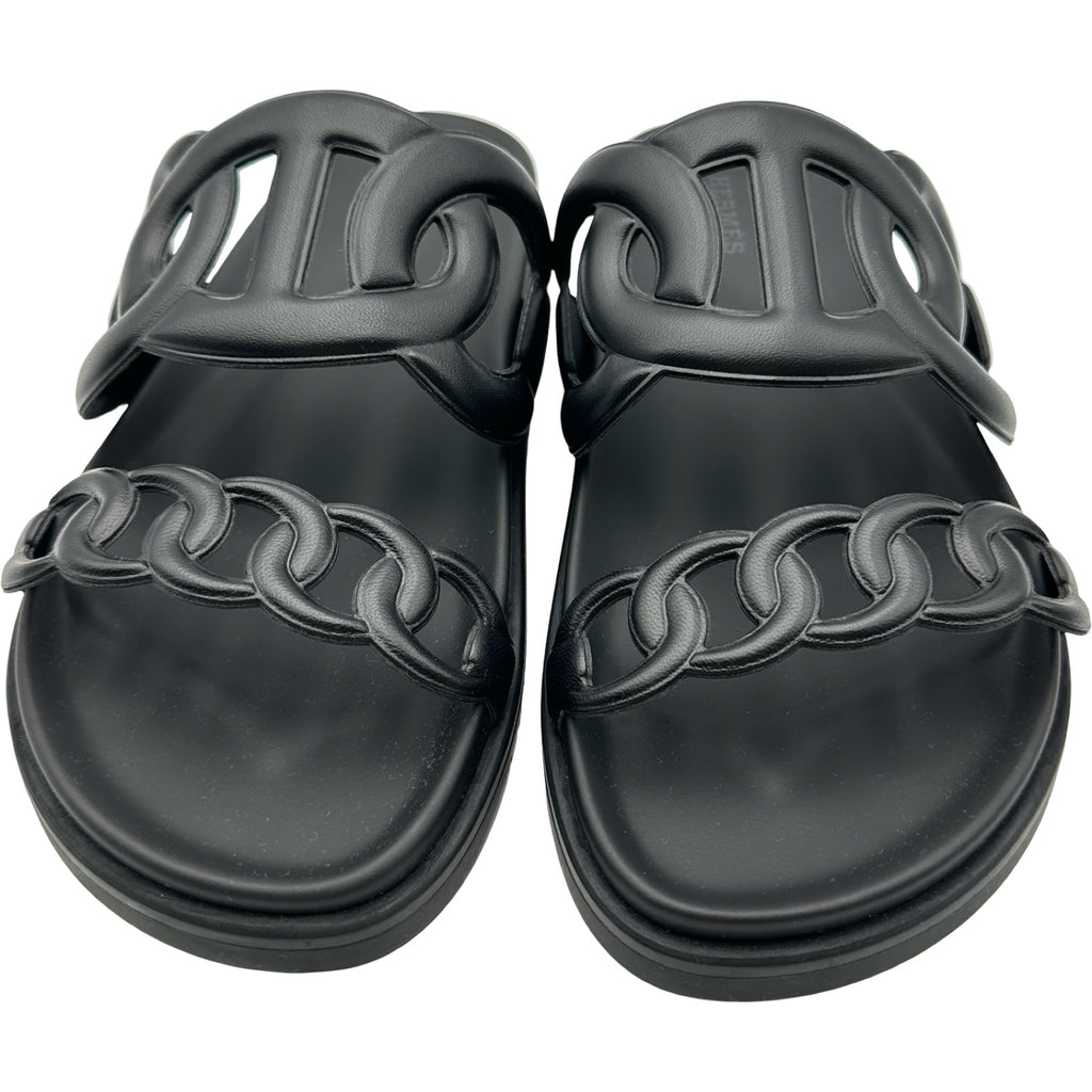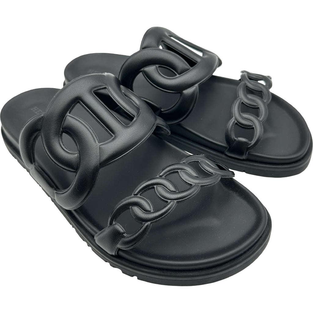 エルメス HERMES シェーヌダンクルサンダル ブラック レザー レディース サンダル