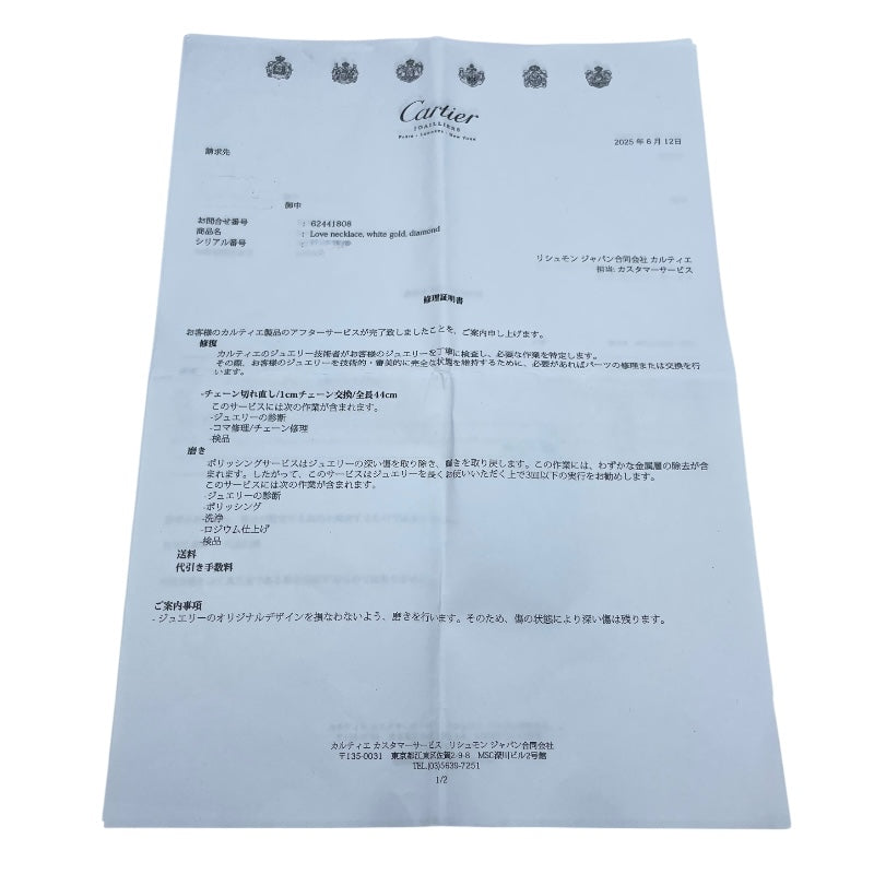 カルティエ Cartier ベビーラブダイヤネックレス ホワイトゴールド 750 ジュエリー