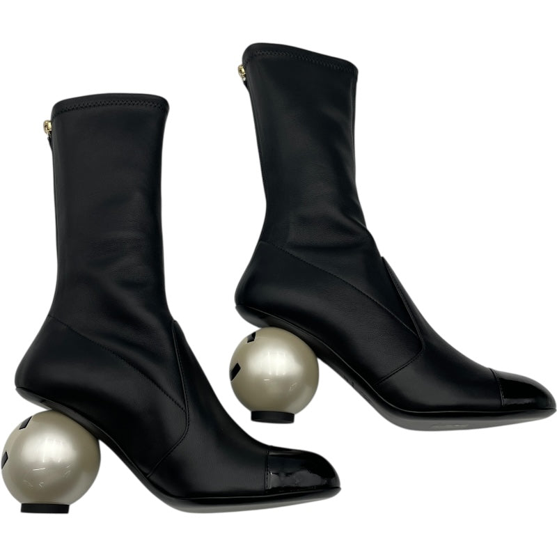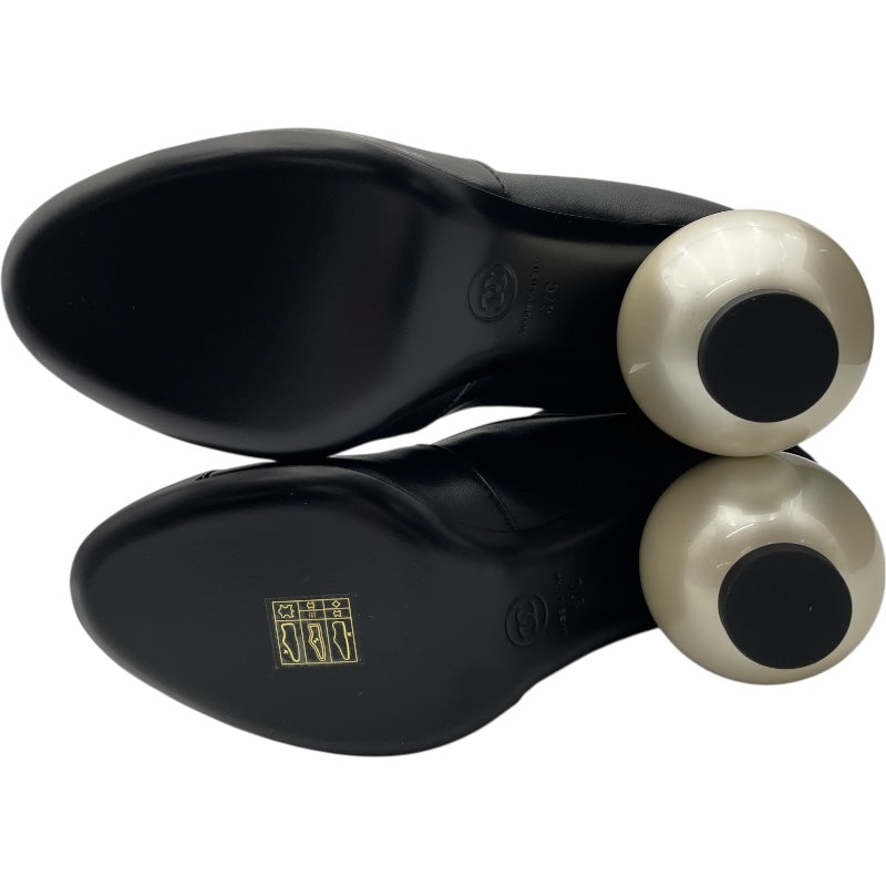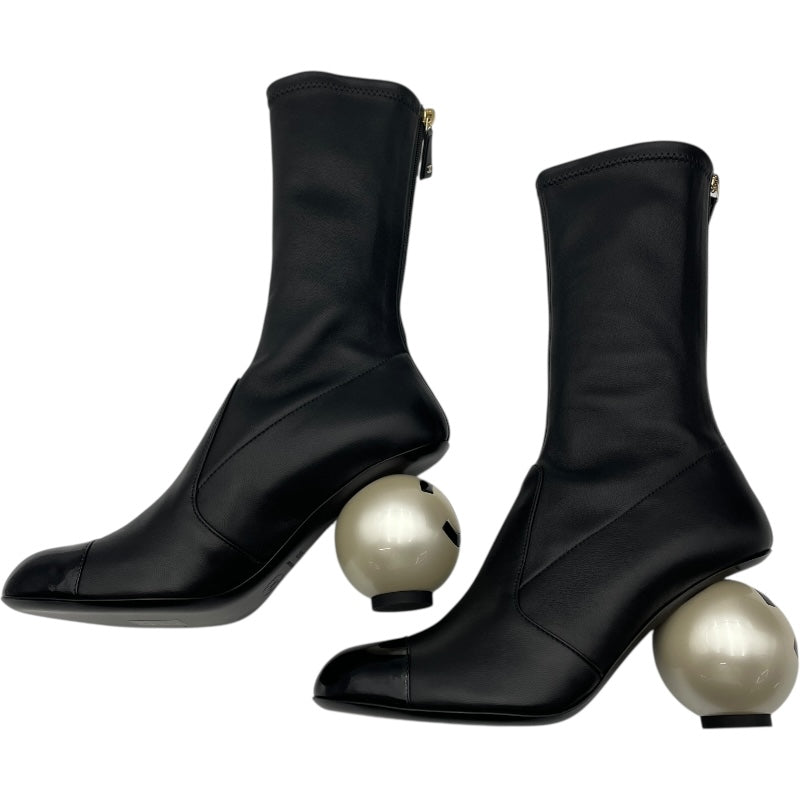 パール装飾レザーショートブーツ |