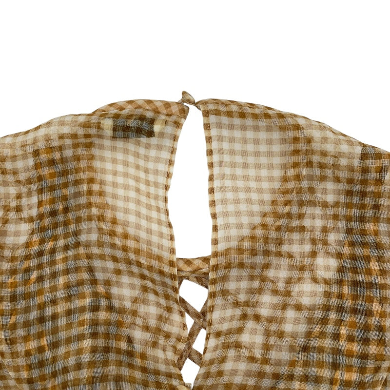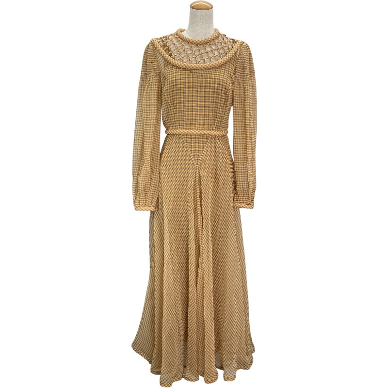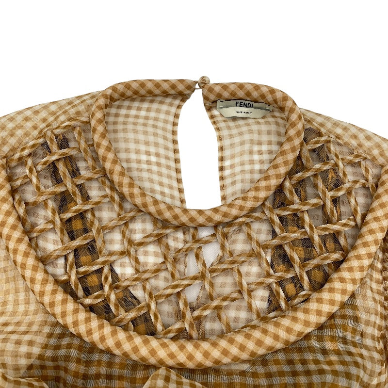 フェンディ FENDI ギンガムチェックシースルーワンピース FDA827 イエロー シルク レディース ワンピース