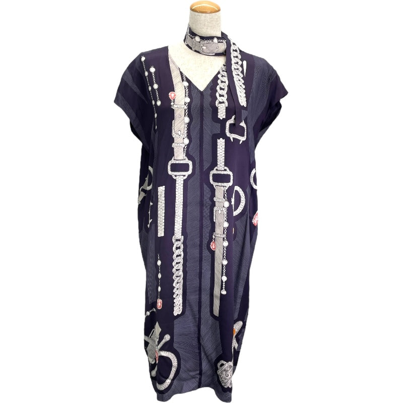 ベルト柄シルクワンピース |