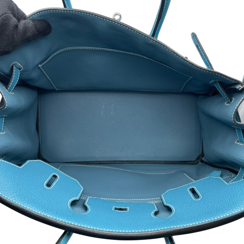 エルメス HERMES バーキン35 □K刻印 (2007年製) ブルージーン シルバー金具 トゴ レディース ハンドバッグ