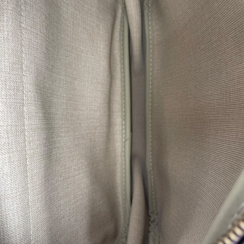 ・全体的に使用感あり ・ヌメ革部分にシミ、汚れ、スレ傷、割れあり ・角汚れあり ・金具小傷、メッキ剝れあり ・保管臭あり ・形崩れあり ・コバ割れあり ・ショルダー使用に伴う汚れあり |