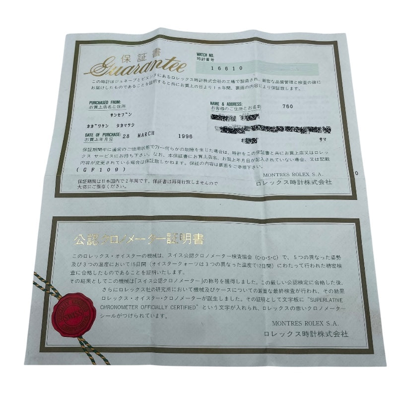保証書(1996年3月)・当店オリジナルBOX・当店内部保証書【付属品欄と画像に写っている物が付属品の全てとなります】 |