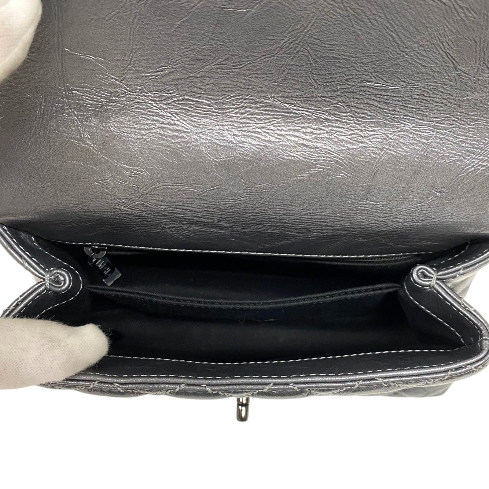 メタリックシルバー ブラック金具