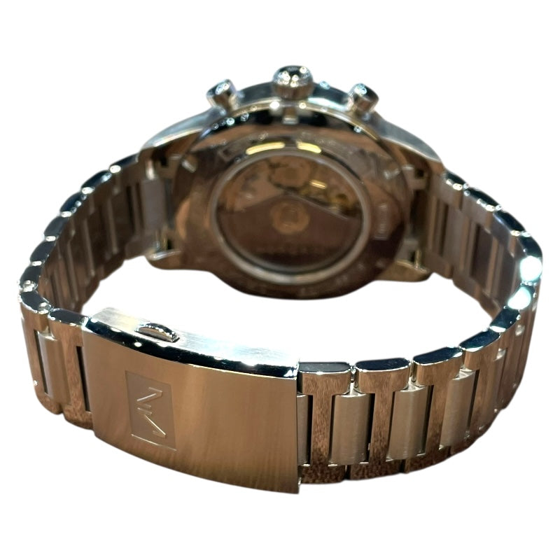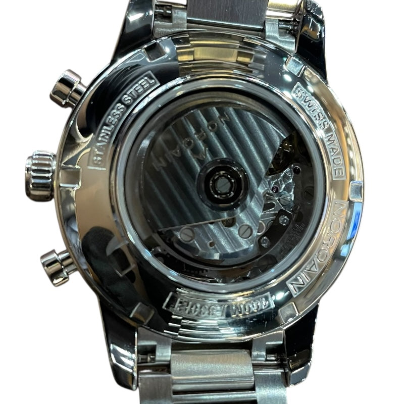 クロノグラフ、デイト表示、シースルーバック |